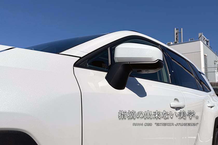 | 全てのグレードにおいてボディカラーの如何を問わずブラックのカバーが採用される 事となった60系、以前であればこの姿がスタンダードであったものの現在の主流が ブラックアウトへと傾いている中でのカラード仕様ご提案となります。 部品は完全なる「純正交換」となりますため、左右とも相応の交換作業を伴います、 車格に応じて大型なカバー部をボディ色とする事で、旧来には無かったある種の個性 になると考えております。 |