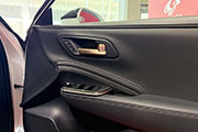 | HEVモデル向けにPHEV専用意匠となるディンプルレザー採用のワンランク上質な シフトノブ流用のご提案。天面素材こそ全モデル統一ながら、より手に触れやすい 外周に黒本革をあしらったモデルとなります。 |