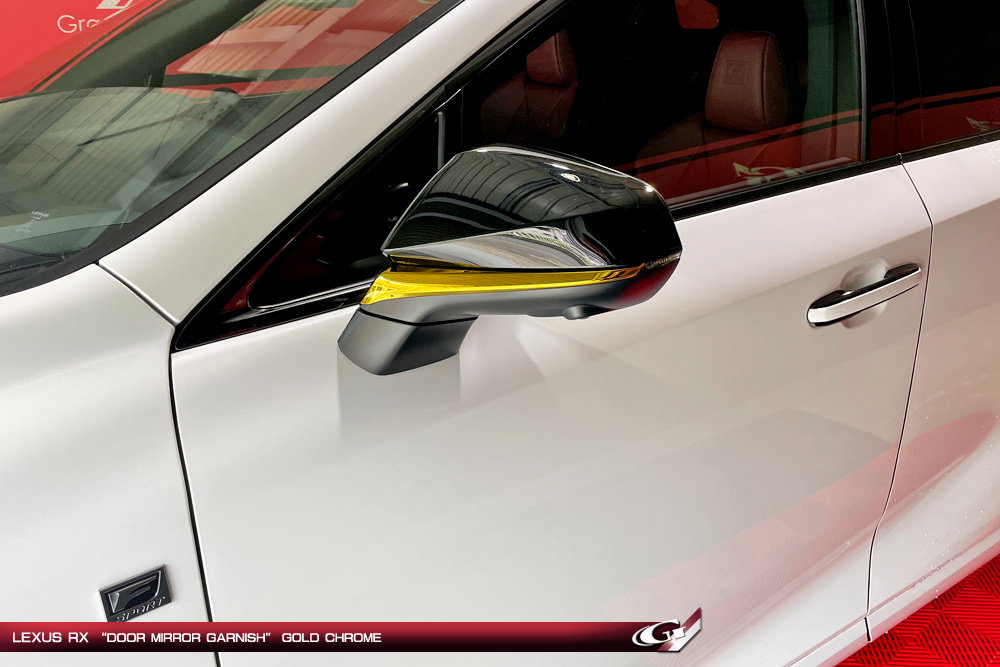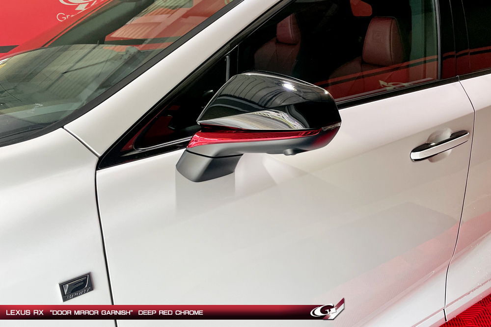 | F SPORT PERFORMANCEではグロスブラック、その他モデルではクロームメッキの 加飾が採用される特徴的なドアミラーガーニッシュでの小変更ご提案。 先行してご提案をする「NX」では大変多くのオーナー様が各色コーデによりお愉しみ 頂けている事を受けて「RX」」でも彩り豊かな5つのカラーでご提案させて頂きます。 |
