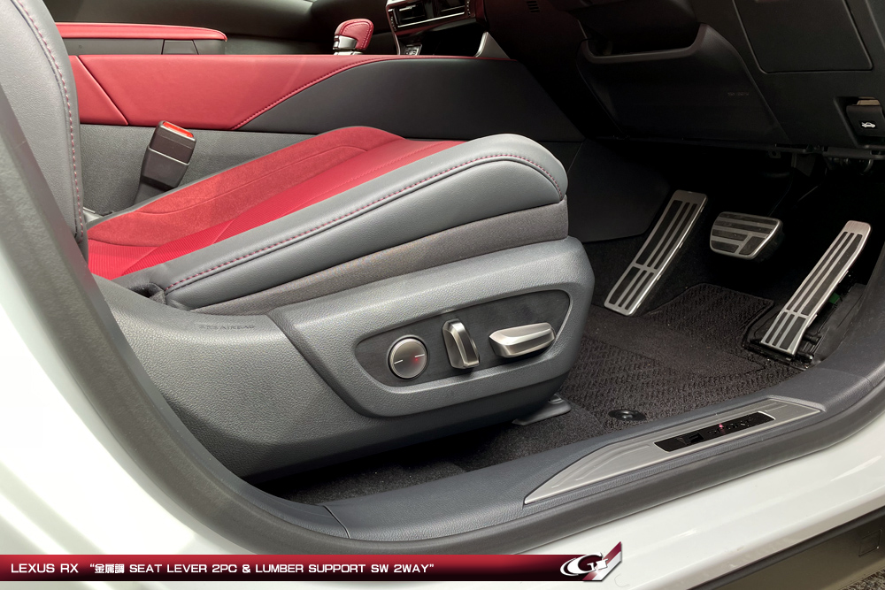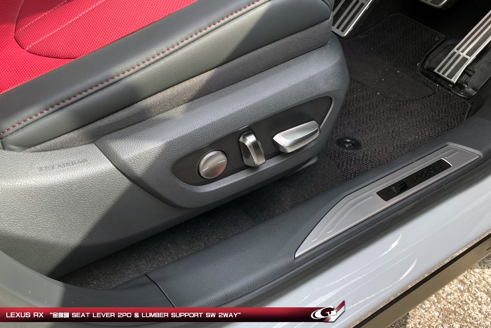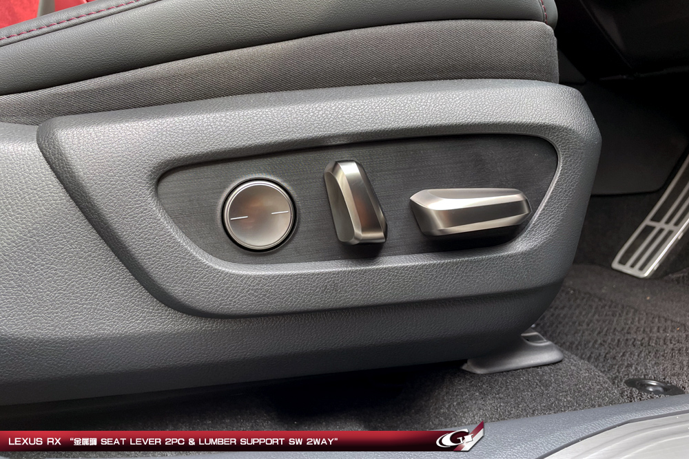 | ドアを開けて車両へ乗り込む際のステータスと満足度をわずかに上昇させる上質な 加飾の金属調マテリアル流用メニューをご用意しております。 運転席・助手席それぞれにリクライニングとスライドを機能させる2PCのレバーを お愉しみ頂ける他、更なる完璧さをお求めのオーナー様には2WAY仕様のランバー サポートSWもインストールして頂けます。 |