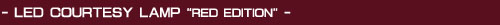 | 現在では一部車格モデルのみとなった前後席4ドア採用のカーテシランプを、情熱的 かつハイマウントランプさながらの強い発光で「赤の世界」を演出するカーテシラ ンプを用意。純正とのカプラー差し替えでお手軽な交換も魅力の他、主に欧州車で 主流のレッド光源を採用して、よりグローバルな雰囲気もお愉しみ頂けます。 *2コ1SETとなります。 |