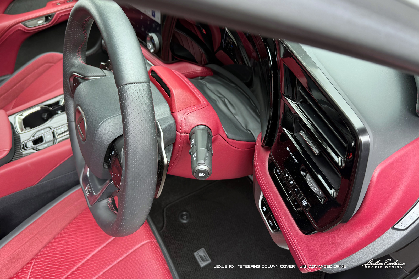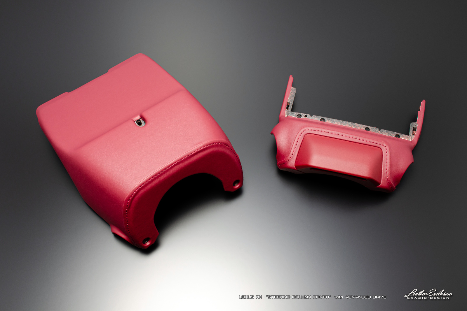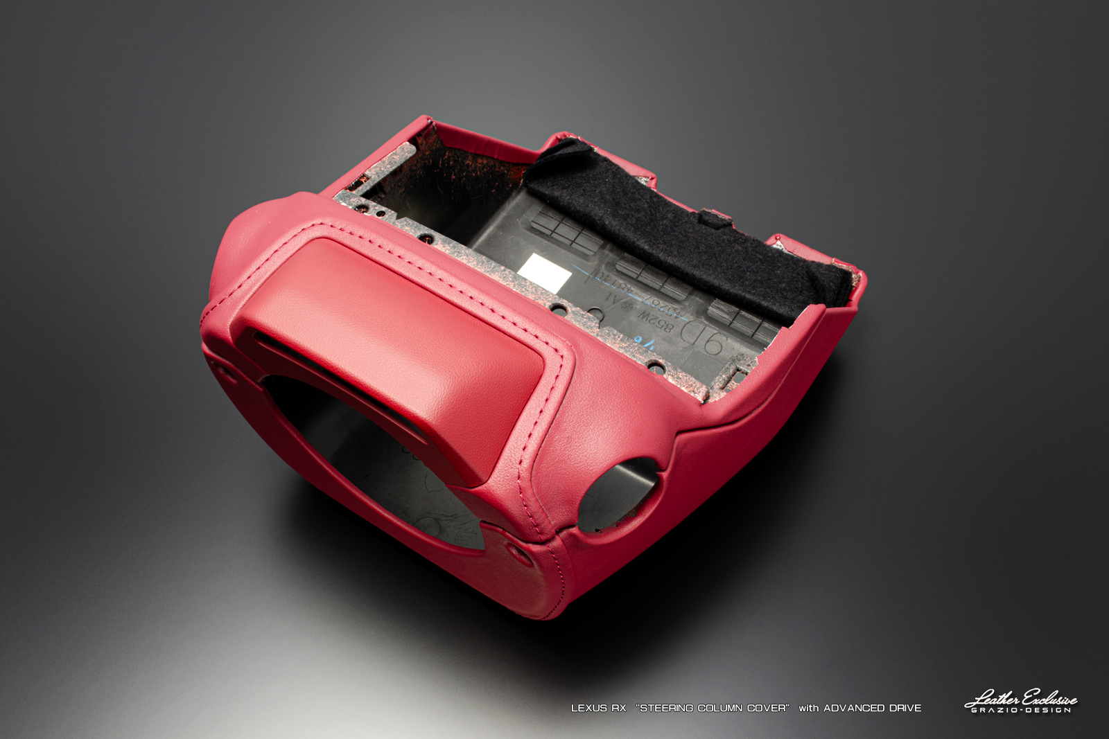 | 上下2分割構造のコラムカバーをフルレザーとするSETをご用意致しました。 アドバンスドドライブが標準のRXでは、上段モニター部のみを一度切断して仮想の パートを分割、本体面にレザーを張り込んだ後モニター部は「革調塗装」によって 復元致します。およそ6ヶ月間の走行履歴により監視状況や作動の状態なども万全に 確認を致しました。 モニター部の革調塗装は「黒以外」のケースのみとなります、黒革またはUltrasuede での製作時は「純正のまま」復元となります。 |