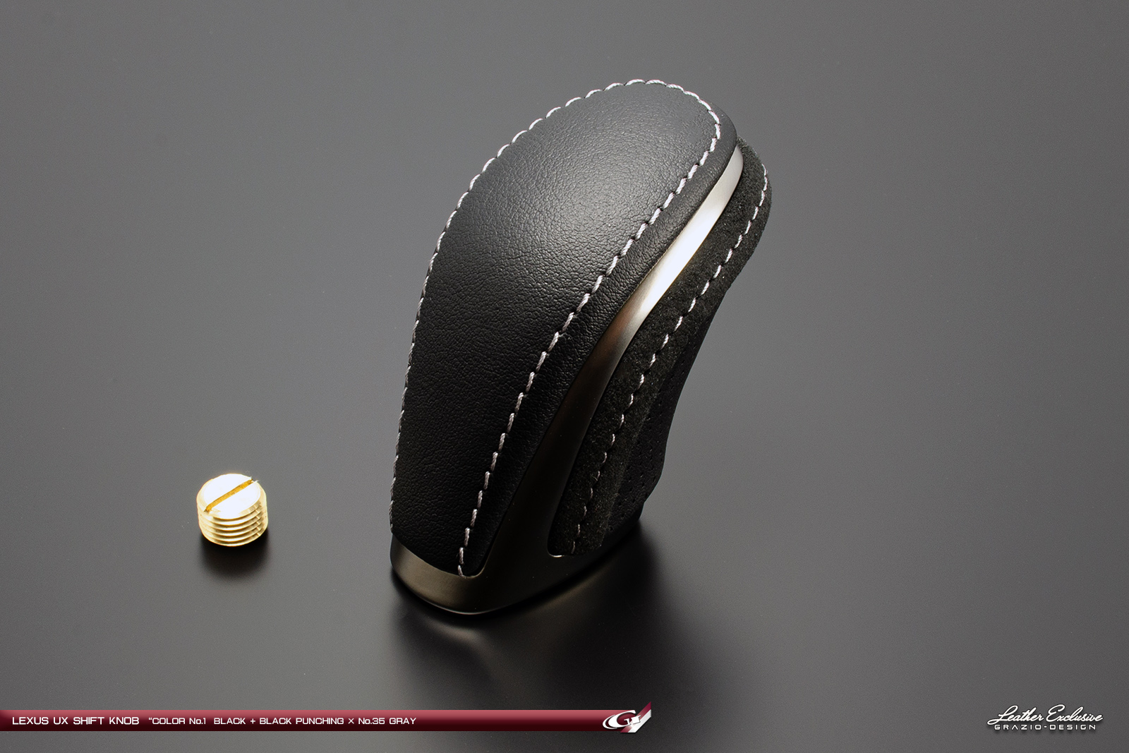 | レクサスUX300eの純正採用がLCと形状を共有する事を受け、それ以外の電気式AT 採用モデルでも流用にてお愉しみ頂けるプログラム。付属の専用スペーサーを併用 して頂く事で純正然に装着して頂けます。(専用取付説明書付属) 天面のパートと背面のパートそれぞれにステッチワークを採用、その境界線には重 厚感と華やかさを感じる金属調を贅沢にあしらう仕様となります。天面の落ち着き あるスムースレザーに対して背面にはスポーティなパンチングレザーを併用、1つ のシフトノブを巡り多くの要素を盛り込んだ意匠をお愉しみ下さい。 |